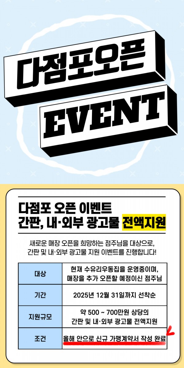 기존 계약되어 있는 점주님들께만 2025년 안에 추가 점포 계약 시
