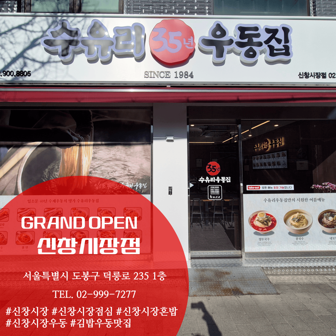 한편 수유리우동집은 신규창업 및 업종변경창업 희망자를 대상으로 가맹비와 교육비를 면제하고 간판을 무상 지원하는 창업프로모션을 진행하고 있다. 자세한 사항은 공식 홈페이지를 통해 확인할 수 있다.