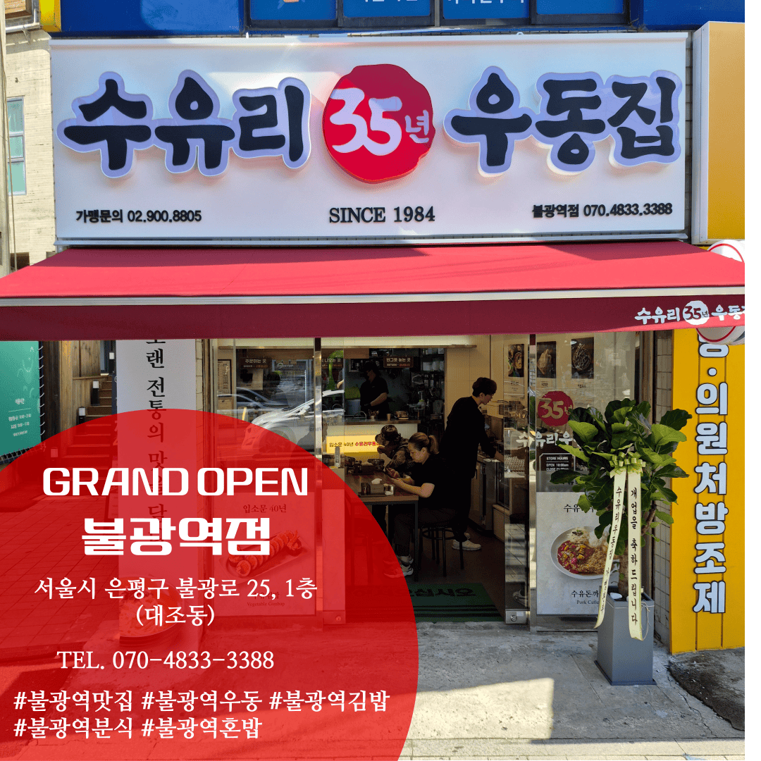 1984년에 문을 연 수유리우동집은 프랜차이즈 사업 이후 동네 맛집을 벗어나 전국 브랜드로 발돋움하기 시작했다. 2024년 말 현재 가맹점 수는 130개다.