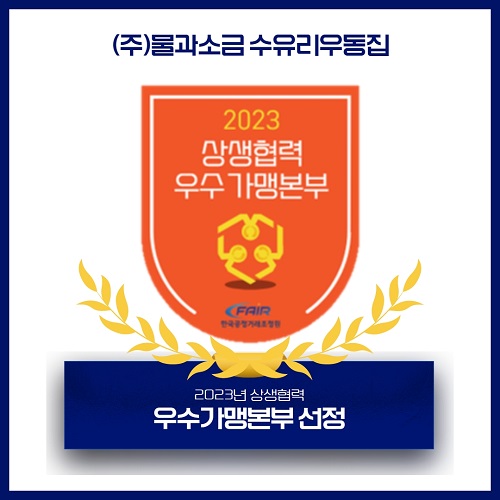 분식, 우동, 김밥프랜차이즈 선두주자 ㈜물과소금 수유리우동집 가맹사업본부가 ‘2023년 상생협력 우수 가맹본부’로 선정됐다고 밝혔다.